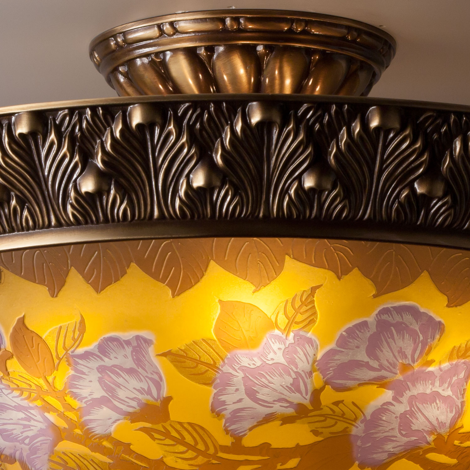 ガレコレクションの木蓮をモチーフにした超豪華な6灯シーリング照明。ガレコレクションは、繊細な色彩と情緒豊かなモチーフ、そして豊かな工芸技術で時代を彩った、エミール・ガレのガラス工芸品を現代に蘇らせたシリーズです。