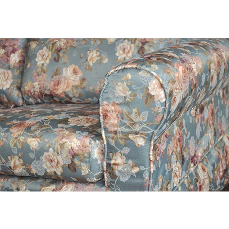豪華な花柄(ブルー)が、お部屋の華やかな雰囲気にしてくれる3人掛けソファー。カバーリングタイプでファブリックもドライクリーニングできます。