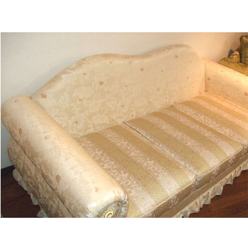 ヨーロピアンデザインのゆったりとした掛け心地の3人掛けソファー。エレガントな柄のファブリックでお部屋を豪華な空間に変身させます。