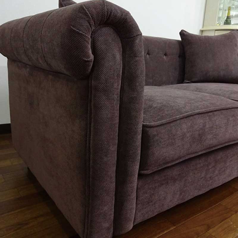 シックなファブリックを張ったチェスターフィールド2人掛けソファー