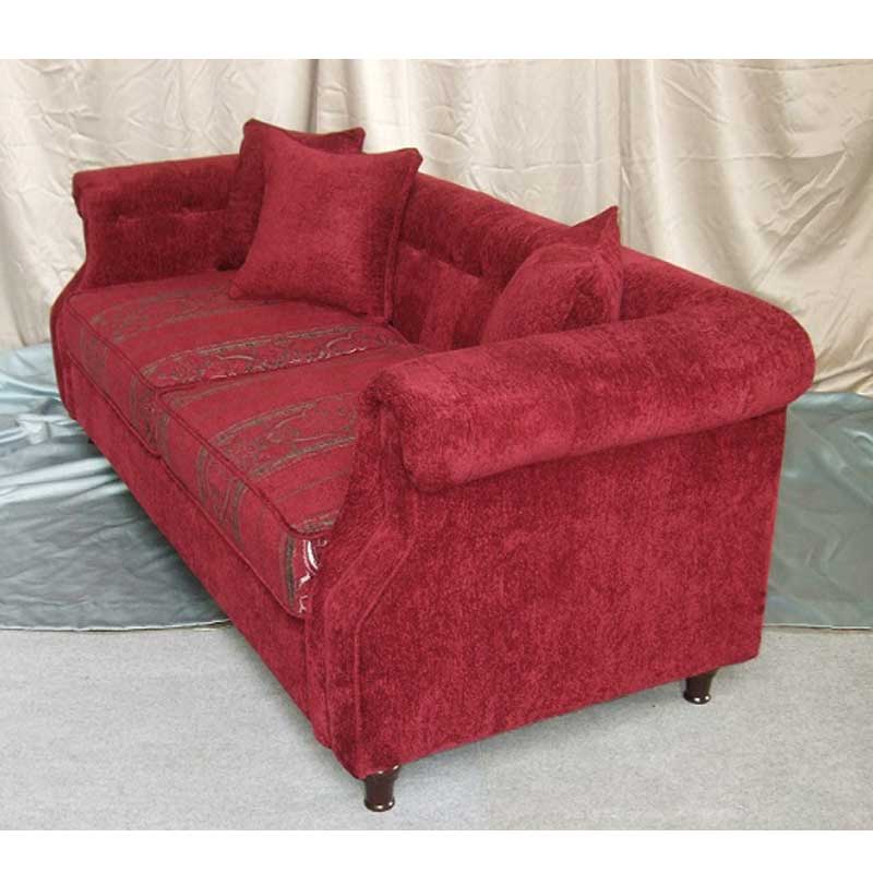 真っ赤なファブリックを張ったチェスターフィールド3人掛けソファー