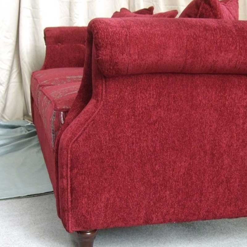 真っ赤なファブリックを張ったチェスターフィールド3人掛けソファー。