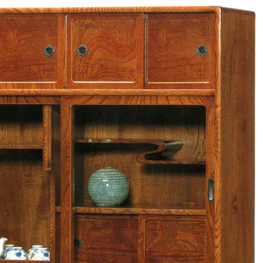 ケヤキ材の綺麗な木目を生かし、匠の技が、光る逸品です。こちらの和茶棚は、ケヤキの天然杢を使用した間口90cmのバランスのとれたデザインです。店長コメント