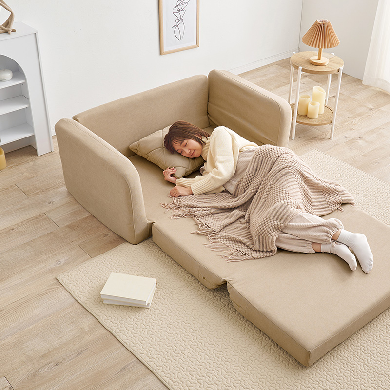 肘はリクライニング機能付きでリラックスしやすい体勢に合わせて角度を調整可能なコンパクトソファベッド。