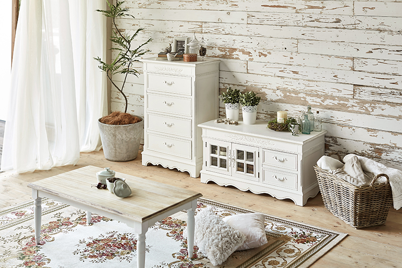 かすれたペンキや月日を経た木の質感などシャビーテイストを再現したテーブル