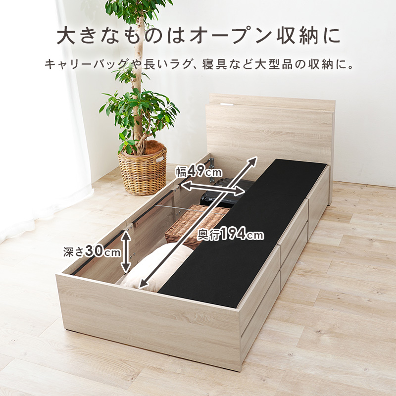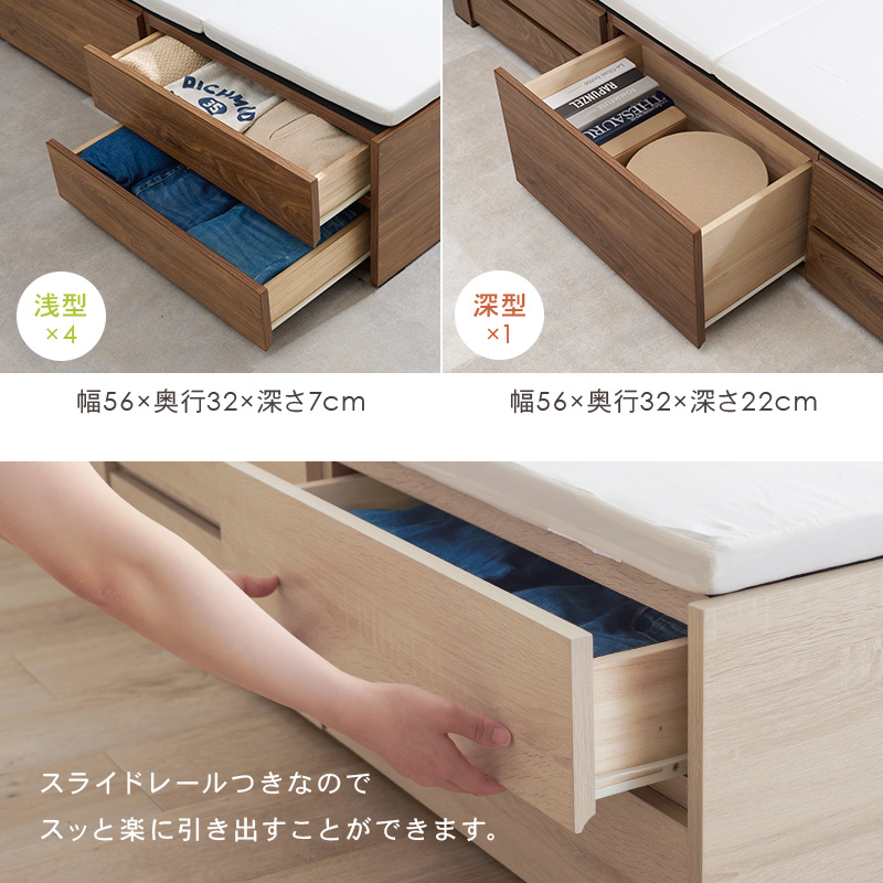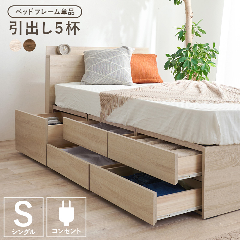 5杯の抽斗付きチェスト付ベッド(マットレス別売) 送料無料