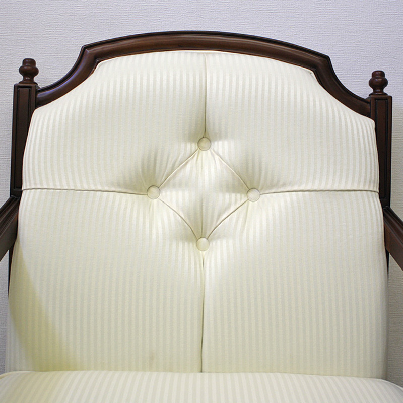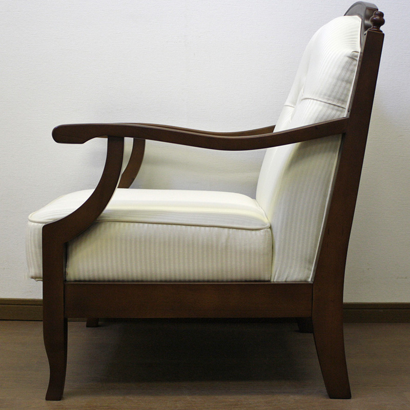 ベネチアシリーズの猫脚1Pソファー(BE張地)は、伝統的なヨーロッパの流れを汲むエレガントなデザインのソファーです。ヨーロッパのデザインをモチーフにインドネシア工場で生産された高品質でリーズナブルな逆輸入家具、ベネチアシリーズです。日本国内一流メーカーのインドネシア工場で海外輸出向けに開発されたお洒落で機能的なベネチアシリーズのソファー。落ち着いたグリーンのファブリックが、お部屋の雰囲気を和ませます。