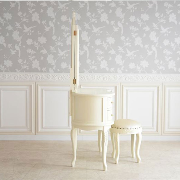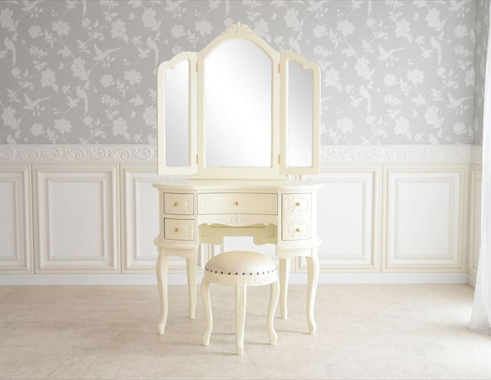 アンティーク調の白色の三面鏡 ドレッサー(スツール付き) トリノ サヴォイア シリーズ