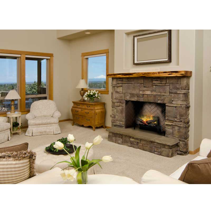 レヴィルーションシリーズは、曇ったアクリルガラスに映る炎が薪の間から燃えて見える新しいタイプの電気暖炉です。よりリアルな炎とハードウッドを再現した疑似薪をお楽しみ下さい。