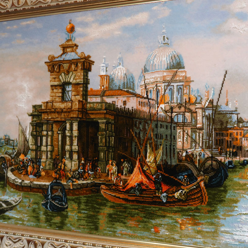 世界で一枚のこの絨毯絵画の味わいをお楽しみください。