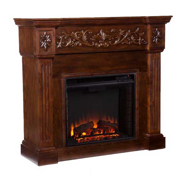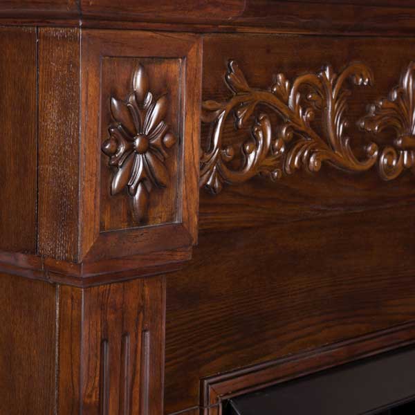 優雅かな花柄文様が特徴的なゴージャスなデザインのトラディショナルタイプの電気暖炉。