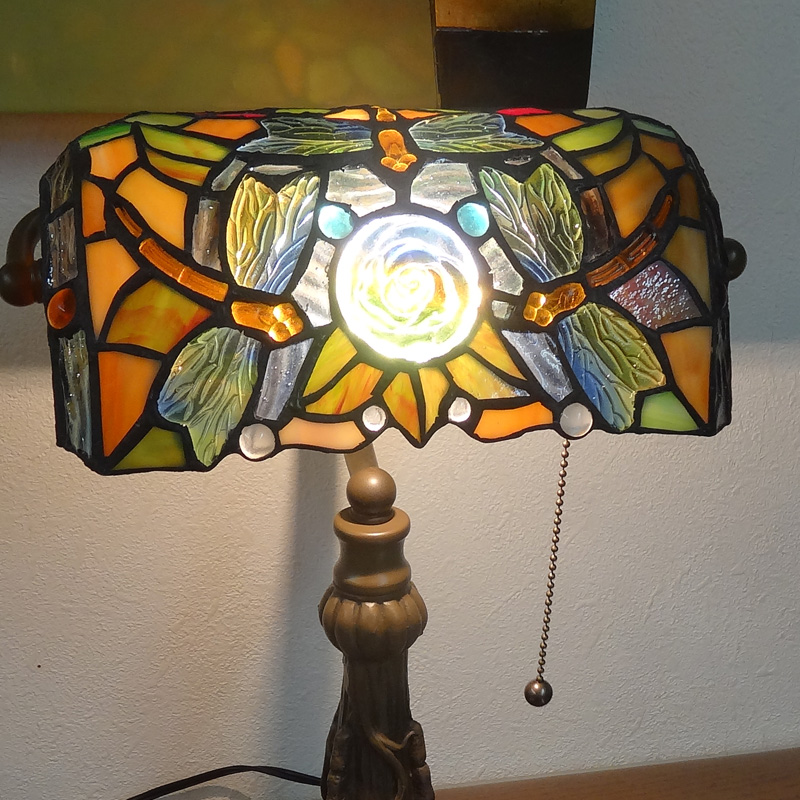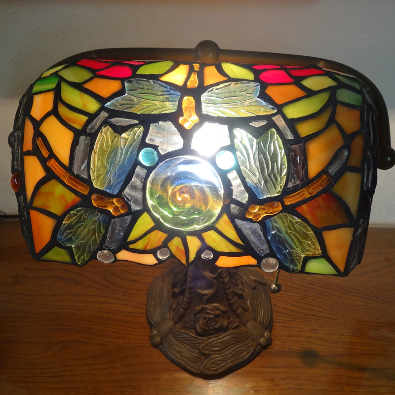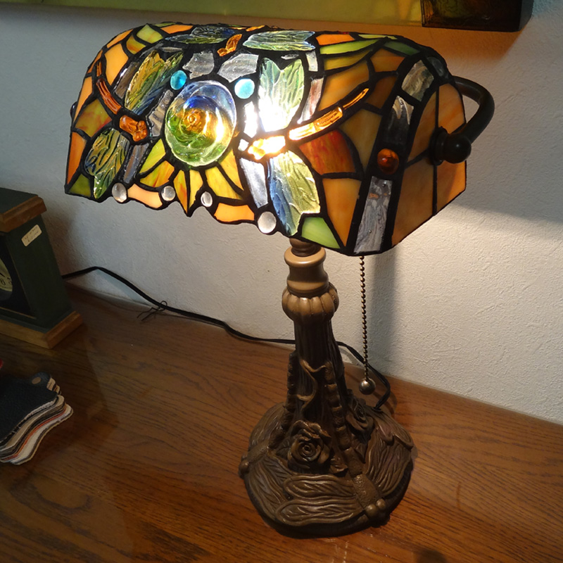 おしゃれなバンクランプ 薔薇とトンボ ステンドグラステーブルランプ