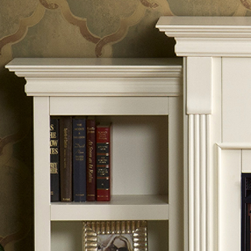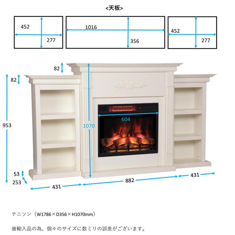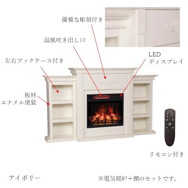 (北海道、沖縄、離島等一部地域を除く) 電気式暖炉テニソンアイボリーは、マントルピースの左右がオープン棚になっていて書籍の収納や飾り棚としても使え、キャビネット感覚の電気暖炉です。