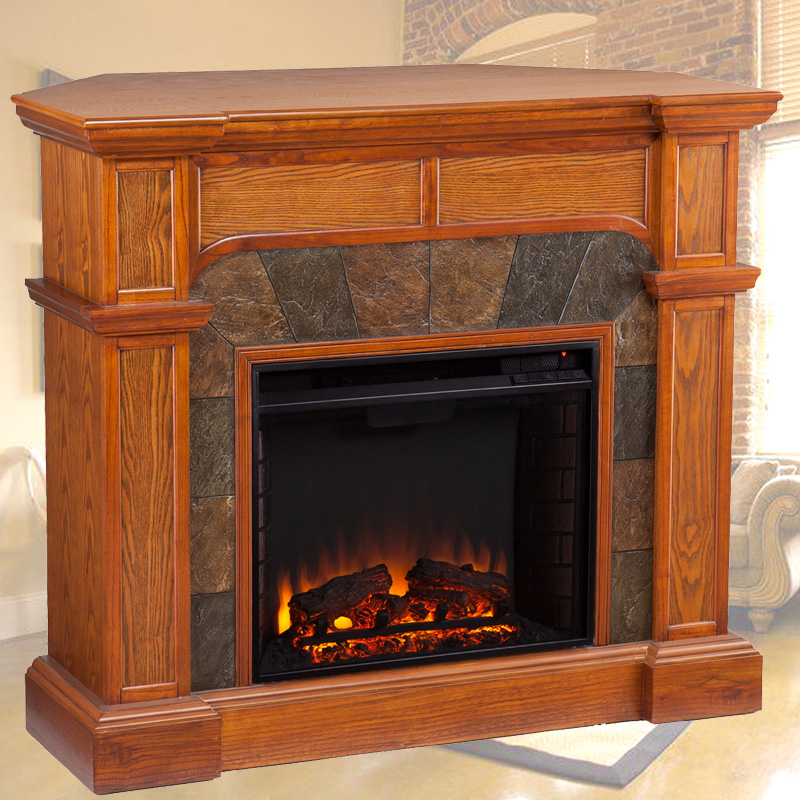 (北海道、沖縄、離島等一部地域を除く) コーナー兼用で置くことのできる電気暖炉カートライト。アースストーンを配し、より豪華さを演出しています。