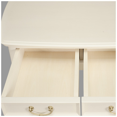 天板・前板・側板の表面にはリンデン材突板を貼り、木肌を薄く残すミルキーホワイトに仕上げた上品なアイテム。