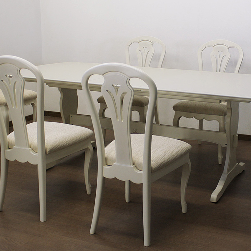 165cmから205cm幅へ伸長するダイニング7点セット フルールWDX 白の輸入家具 【送料無料】
