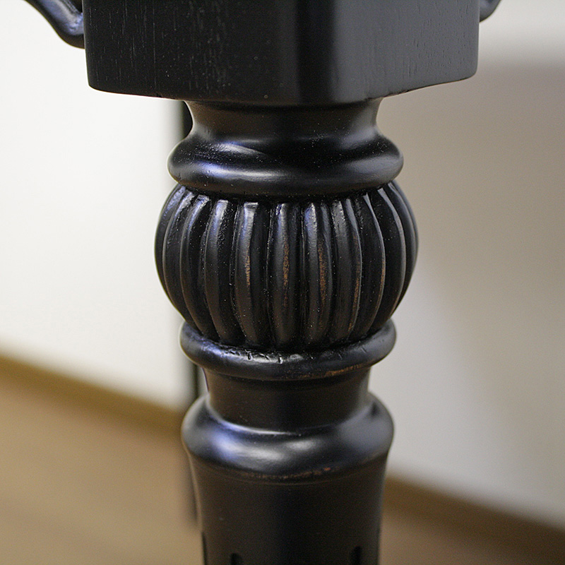 塗装を何度も繰り返し、アンティークな風合いを出しています。アンティーク家具によく用いられている玉脚を使い、手の込んだ高級家具の仕上げをしております。