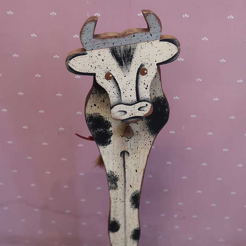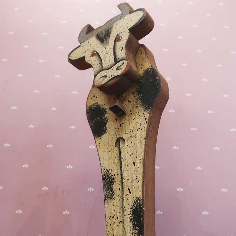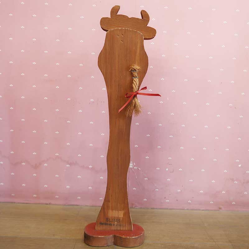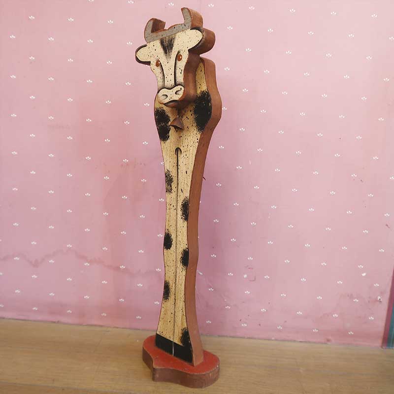 アメリカの家庭で作られる木製のハンドメイド雑貨。木のオーナメントハンサムな足長牛。