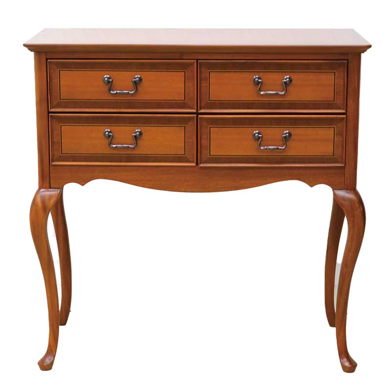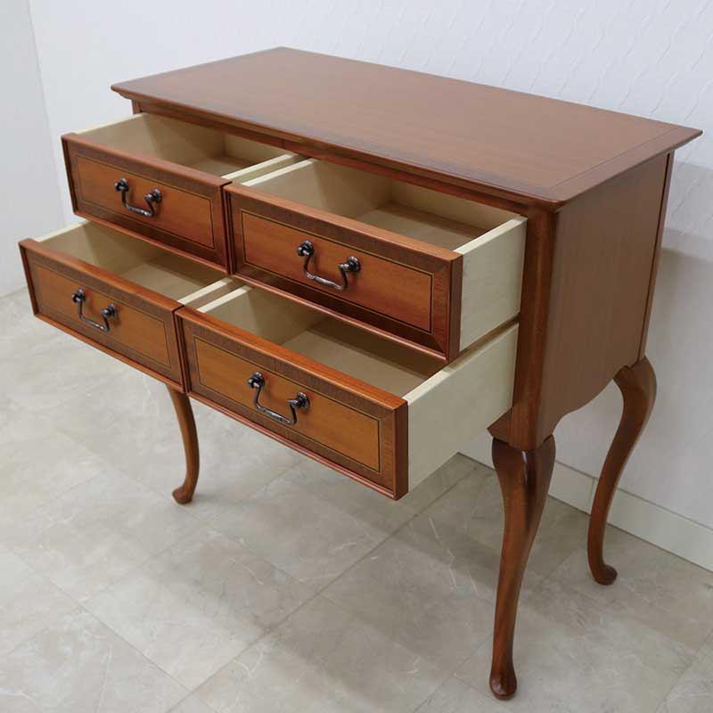 4杯の引出し収納とコンソールテーブルを兼ねた、脚高でしなやかな猫脚ラインが魅力のリビングアイテムです。