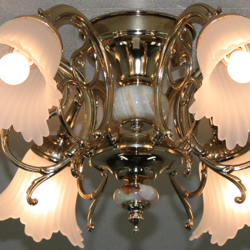 スペイン製のオニクスで装飾された6灯シーリングシャンデリアB型
