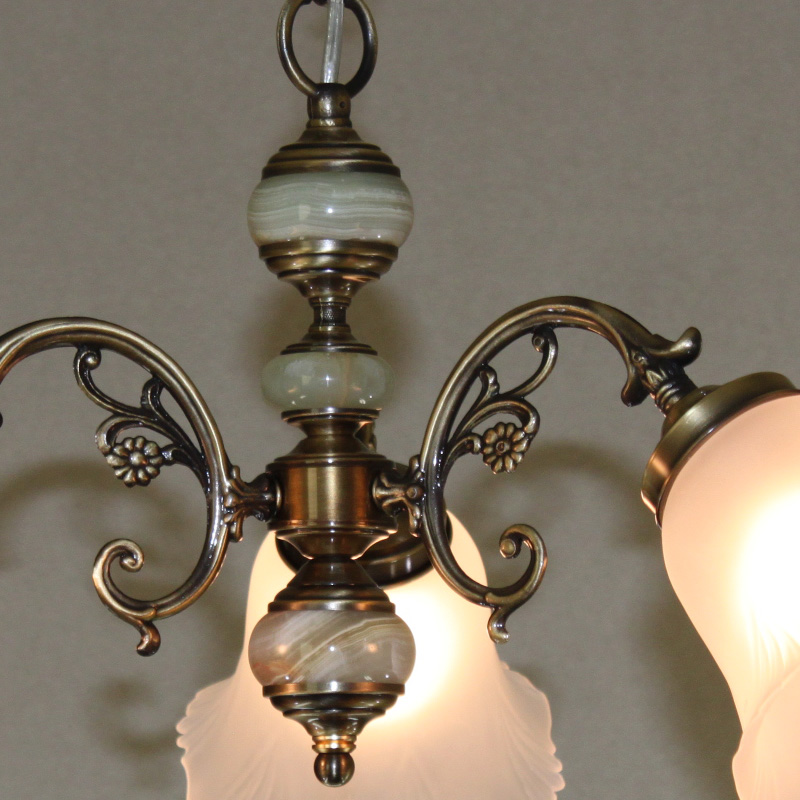 スペイン製のオニクスで装飾された3灯シャンデリアE型