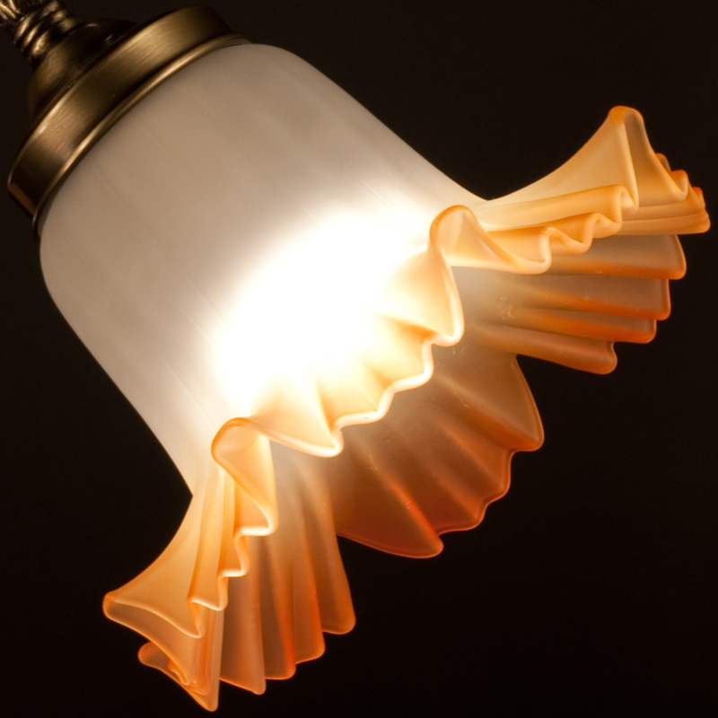 - 本体:鋼・亜鉛合金鋳物 セード:消しガラス(緑塗装オレンジ) 本体飾り:ハンドペイント陶器