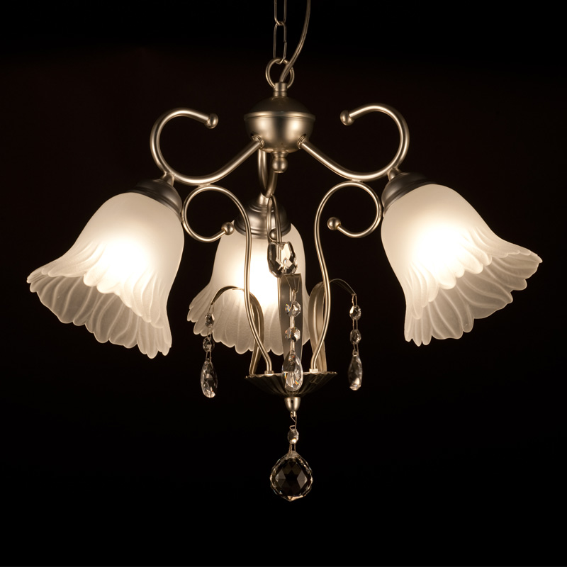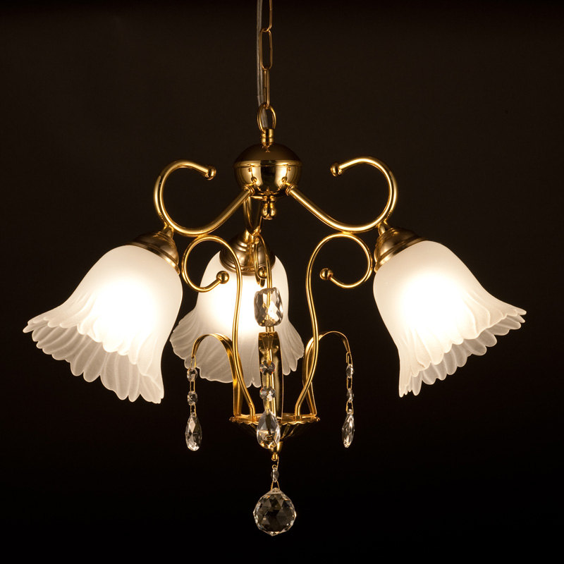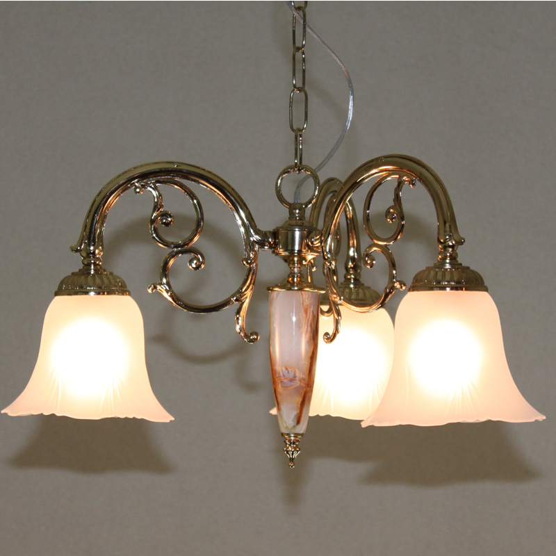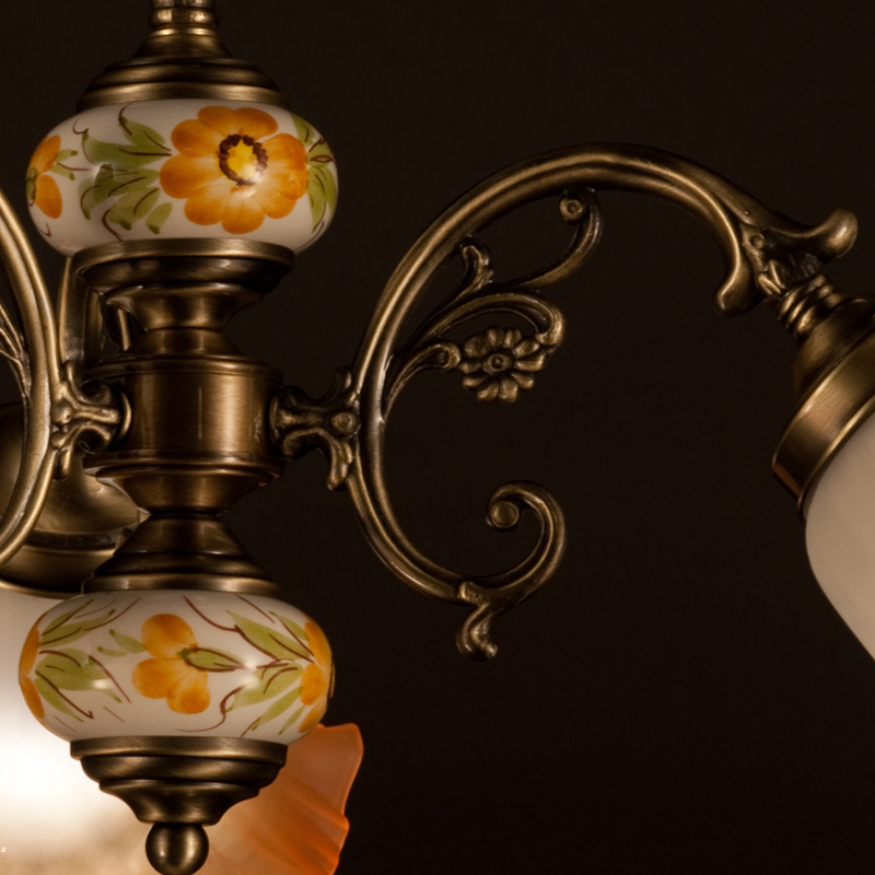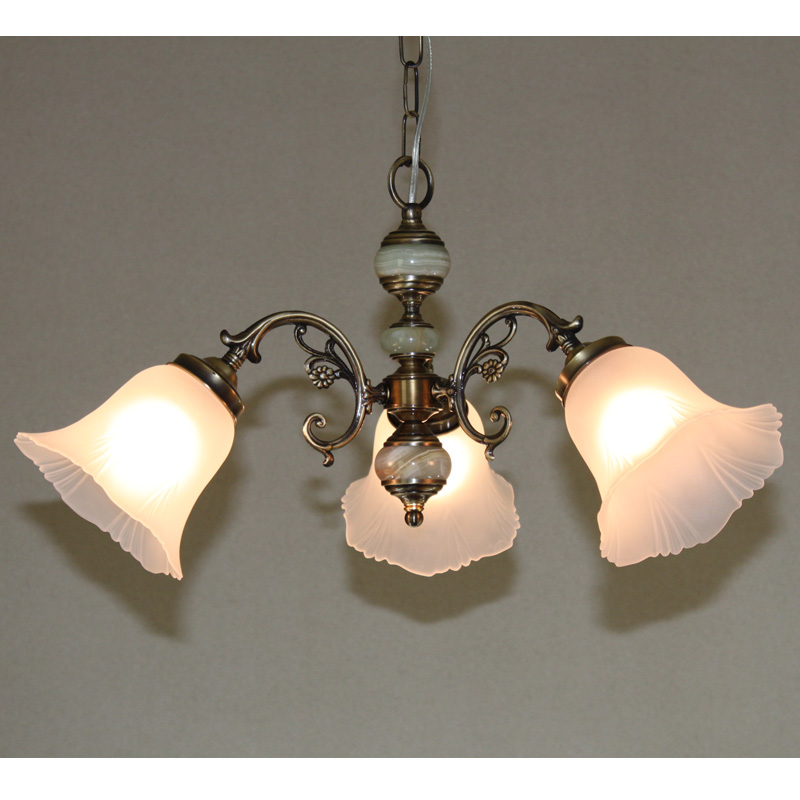 スペイン製の手書きの陶器で装飾された3灯シャンデリア