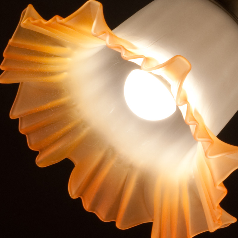 - 本体:鋼・亜鉛合金鋳物 セード:消しガラス(緑塗装オレンジ) 本体飾り:ハンドペイント陶器