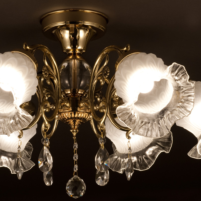 クリスタルビーズで豪華さを演出し、クラシックなお部屋に好適な6灯シーリングシャンデリアです。