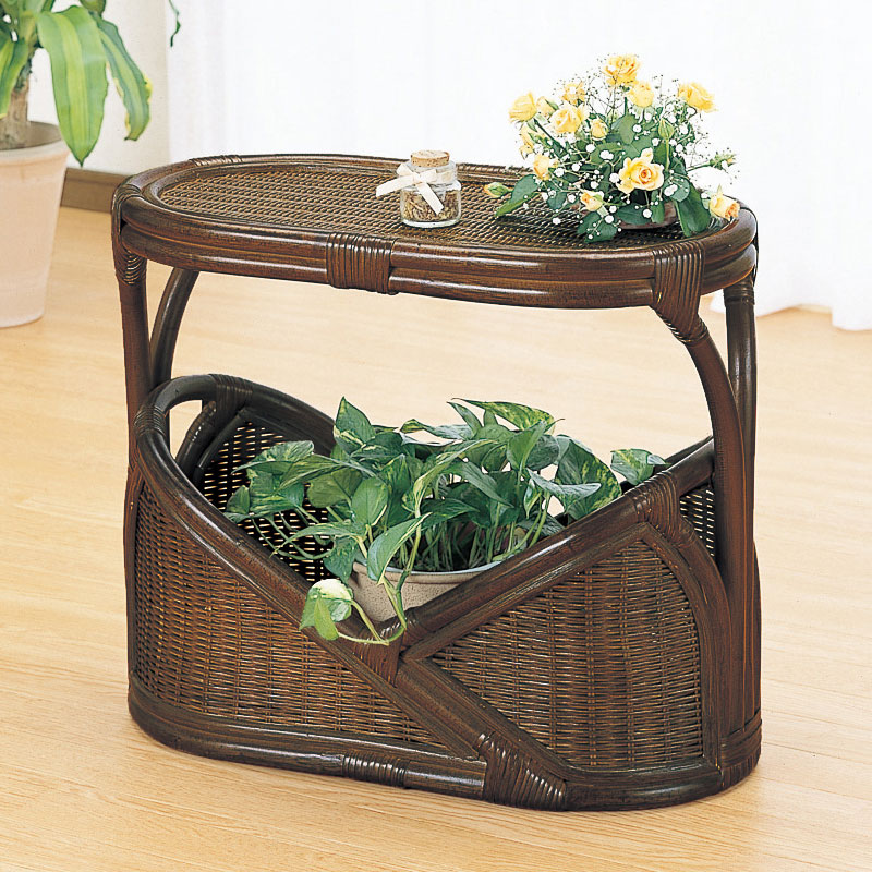 リビング廻りの小物整理に便利なテーブル付籐製マガジンラック ラタン・籐家具