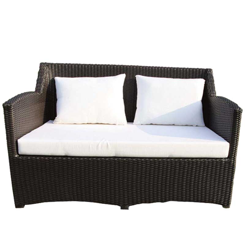モダンなデザインの肘付きの人工ラタンで作った二人掛けソファー。