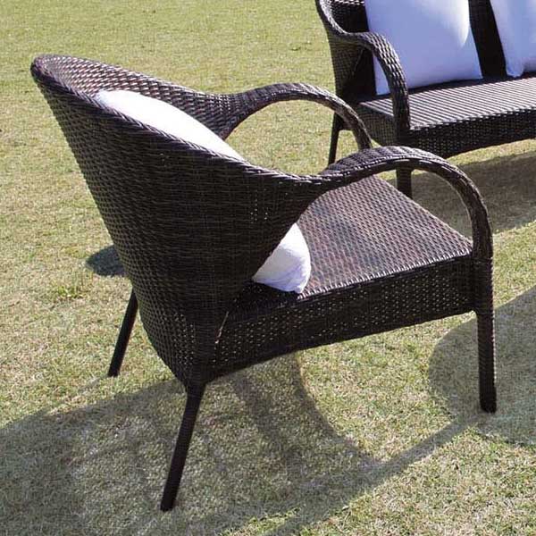 人工ラタンで作ったなめらかなカーブアームが素敵な一人掛けソファー。