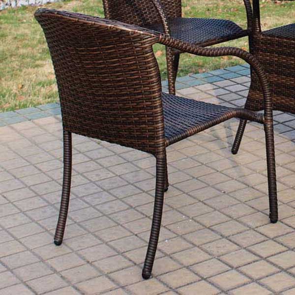 人工ラタンで作ったなめらかなカーブアームが素敵な一人掛けチェア。フレームは、アルミで軽量のため、移動もラクラク。