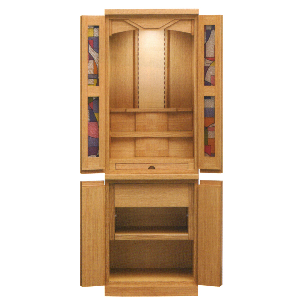 ステンド風フィルムを扉の鏡板にはめ込みモダンでお洒落なお仏壇に仕上げました。