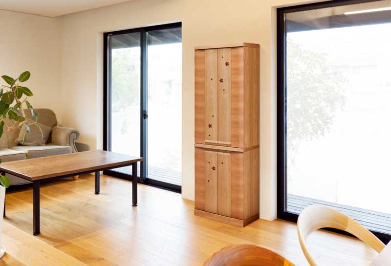 扉に桜の文様があいしらわれたおしゃれな仕上がりとなっております。