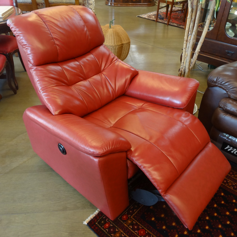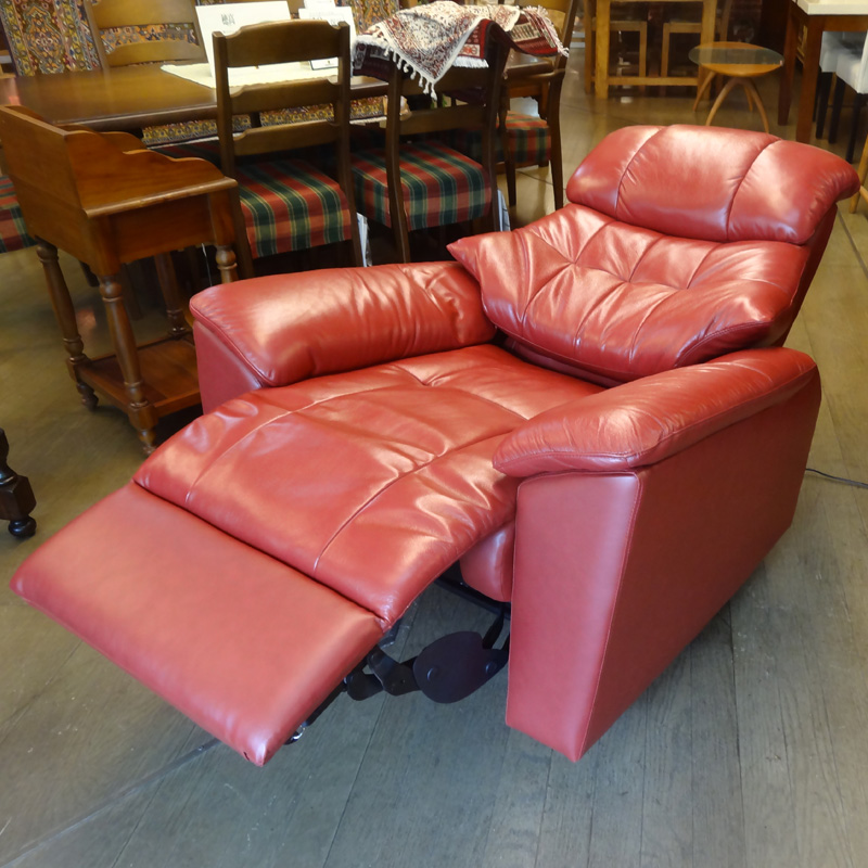 牛革(セミアニリン)のなめらかな質感と柔らかさで高級感あふれる雰囲気のリクライナーチェアです。高級感のあるレッド色