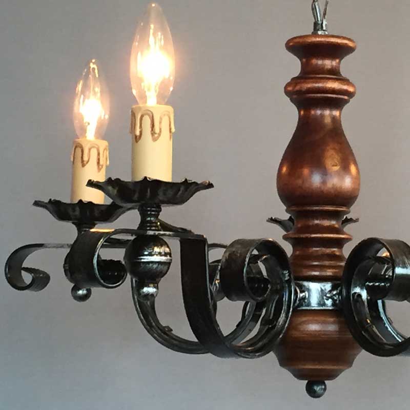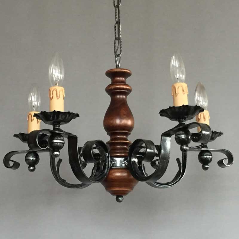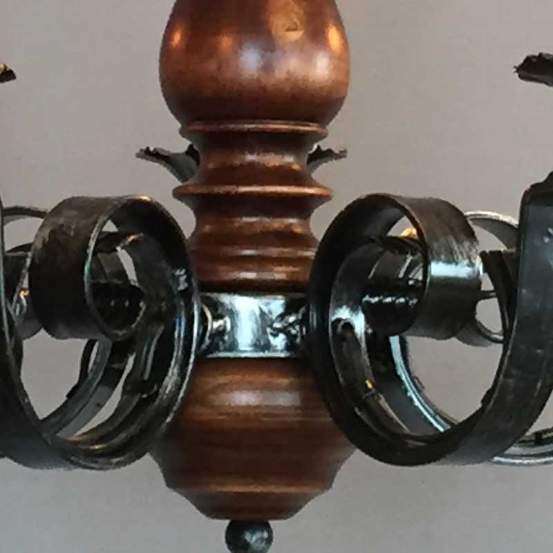 アイアンと天然木のコンビネーション5灯シャンデリア照明 イタリア製