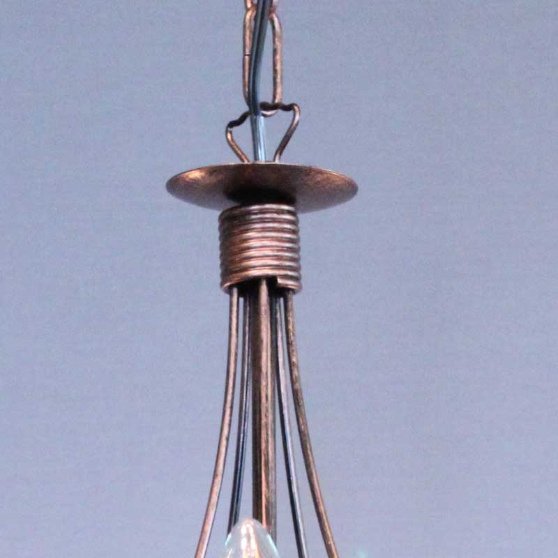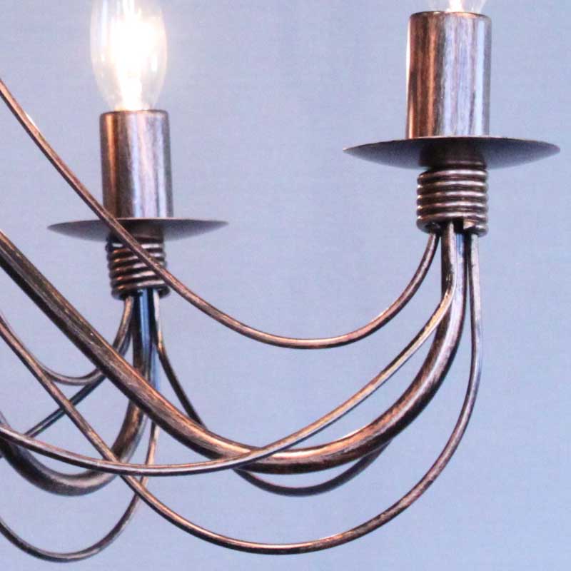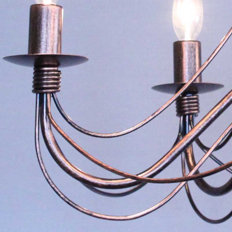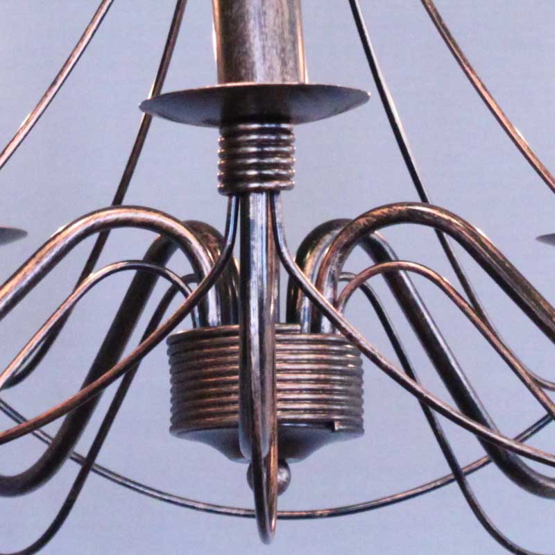 アイアンワークが最も特徴的なイタリアのアイアン銅褐色仕上げの5灯シャンデリアです。細いアイアンフレームをいくつもつなぎ合わせるデザインは繊細なフォルムを生み出し、上質な雰囲気を作り出します。