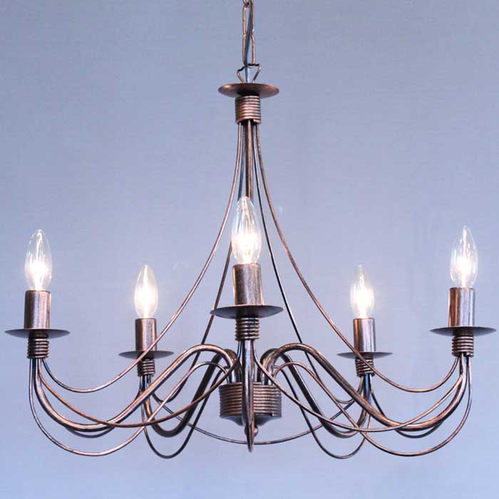 アイアン白金色5灯シャンデリア