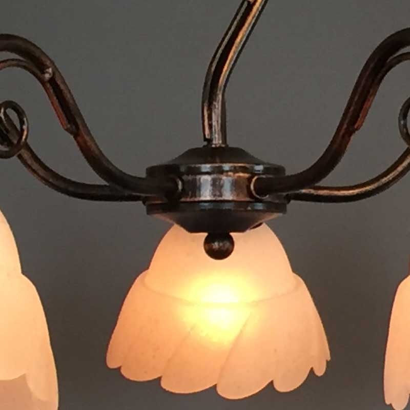 アイアン5灯ガラスシェードシャンデリア照明 イタリア製