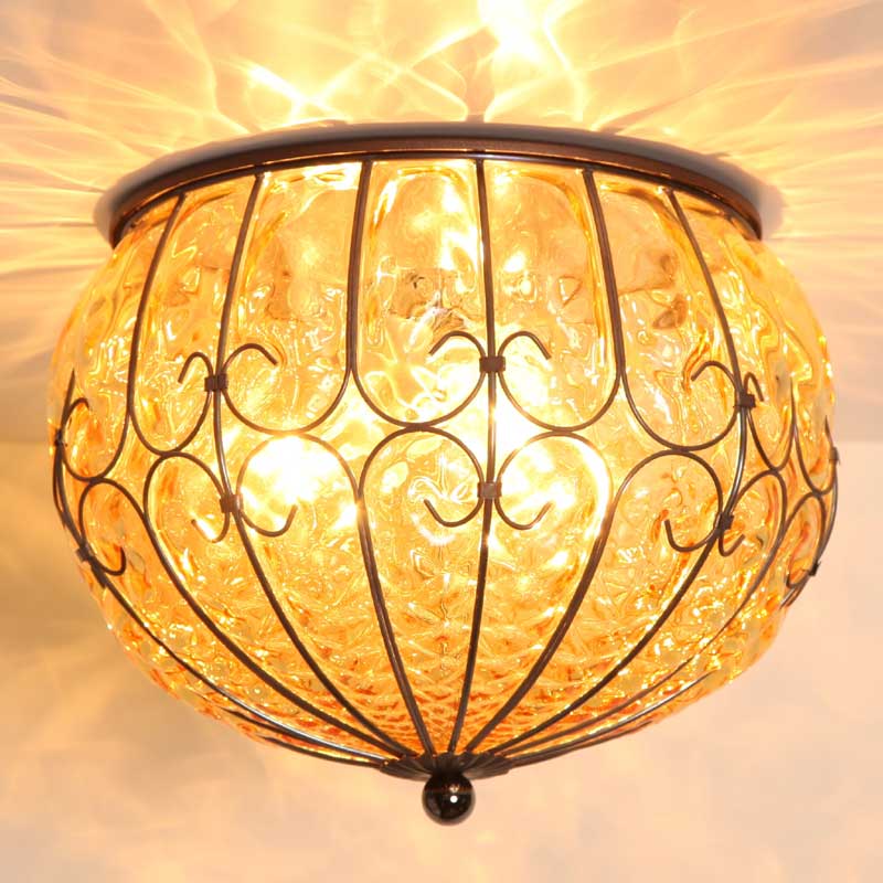 職人の吹きガラスによって作られるこのガラスには、光の拡散を生み出す細工が施されています。