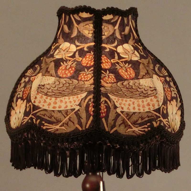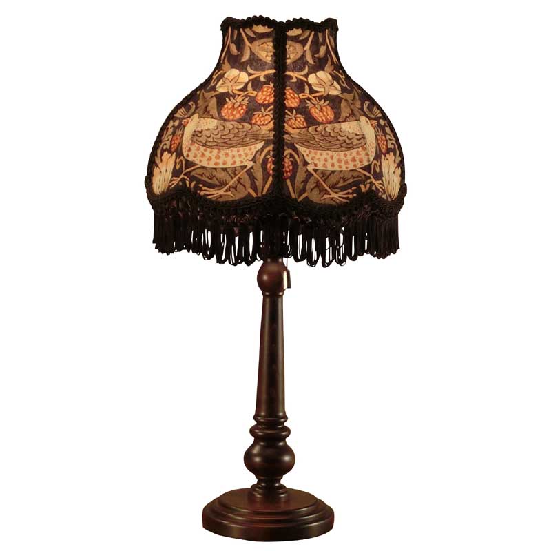 ウィリアムモリスのStrawberry Thief(イチゴ泥棒)デザイン生地を使用したテーブルランプ