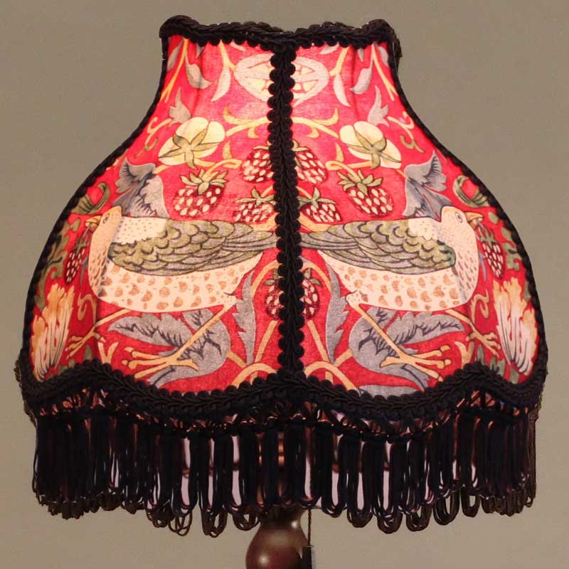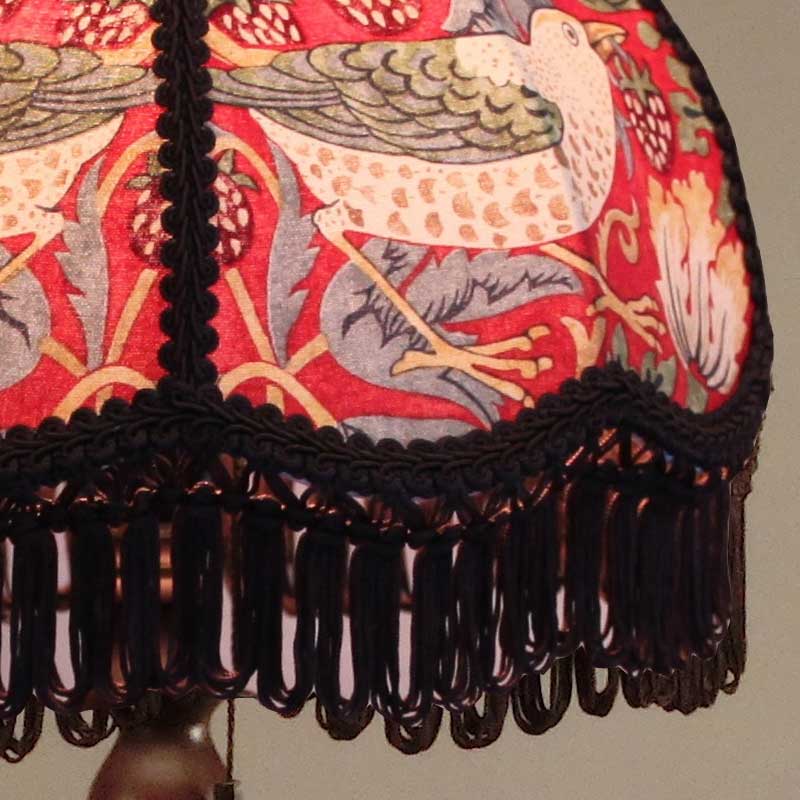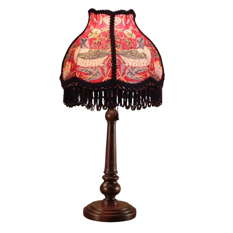 ウィリアムモリスのStrawberry Thief(イチゴ泥棒)デザイン生地を使用したテーブルランプ