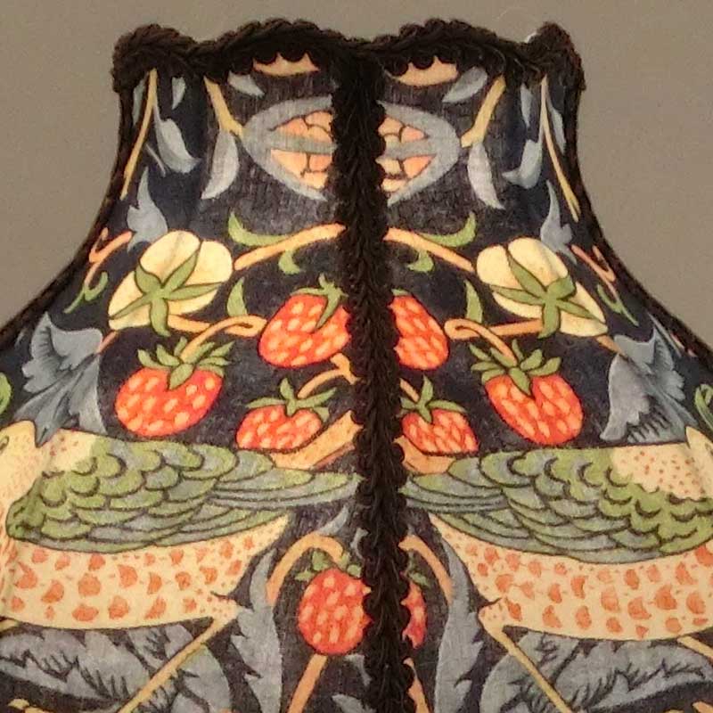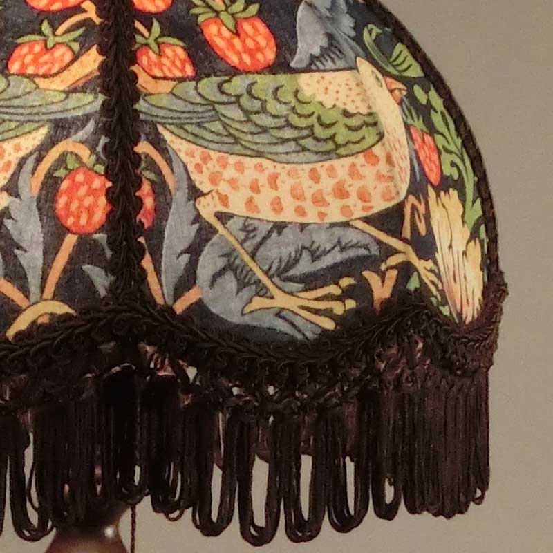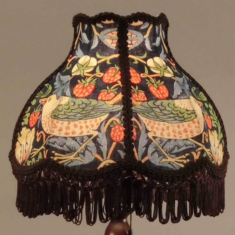 ウィリアムモリスのStrawberry Thief(イチゴ泥棒)デザイン生地を使用したテーブルランプ