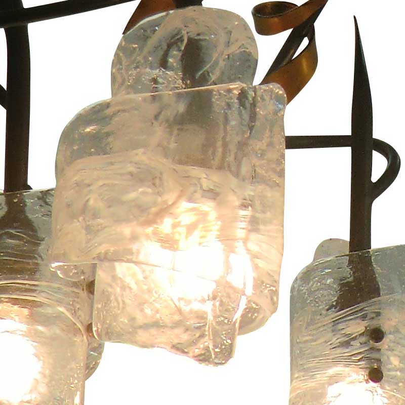 ベネチアンガラス使用したロールケーキを思わせるガラス形状の5灯シャンデリア照明 イタリア製
