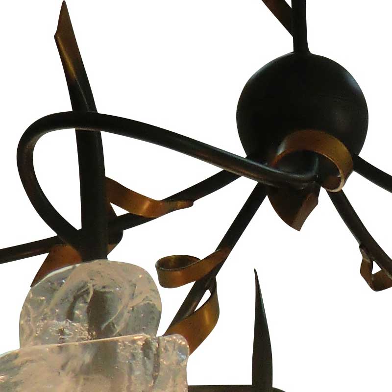 イタリアVELONAに工場があるこちらのメーカーの商品は、ベネチアンガラスを使用し、すべてイタリアで製作されている5灯シャンデリア照明。ロールケーキを思わせる形状のガラスは重量感もあり、芸術品です。