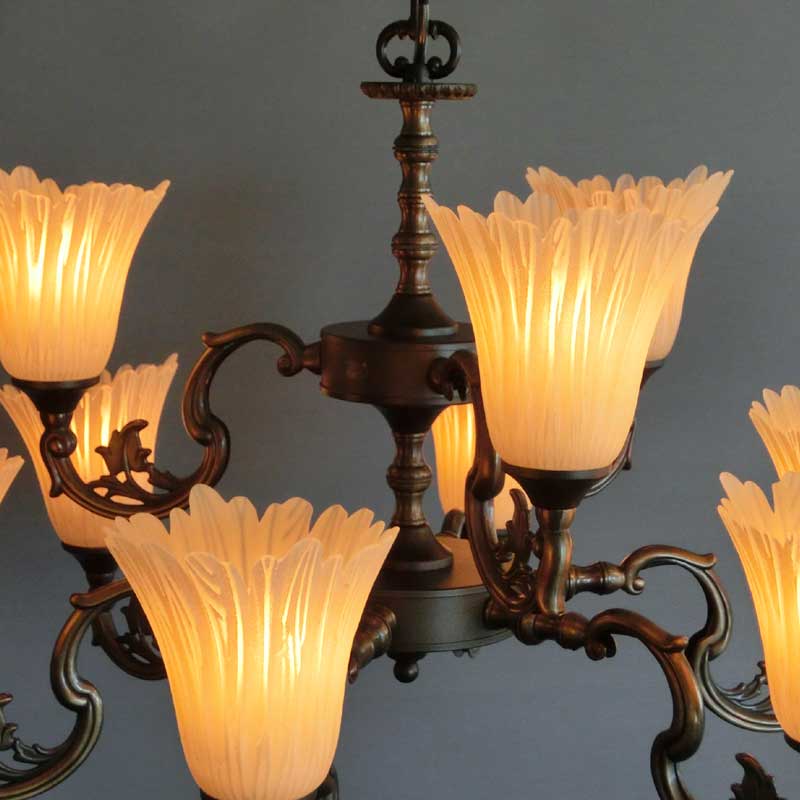 イタリア製ガラスとブロンズ塗装フレームの大型9灯シャンデリア照明 イタリア製