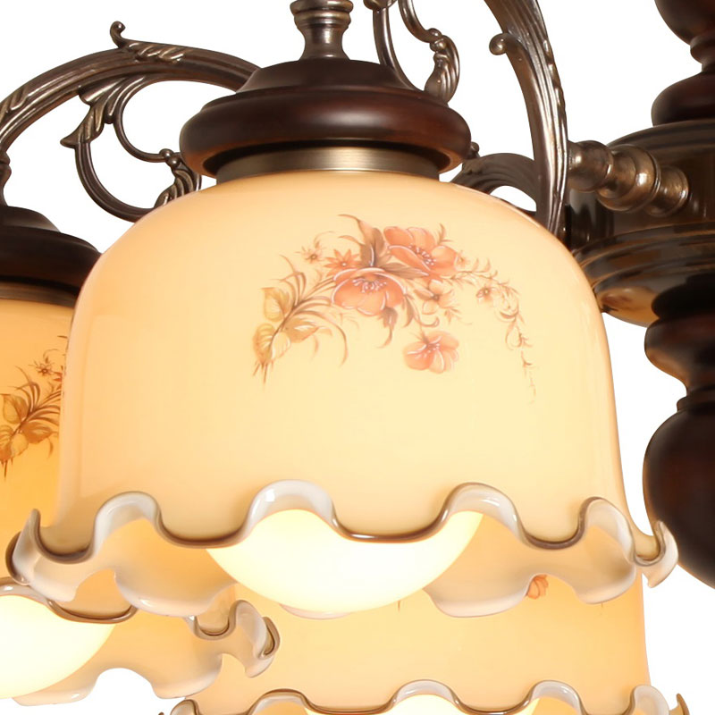 ガラスシェードの縁がスカートのすそにフリルが付いたような動きのある可愛らしいデザインとなっております。