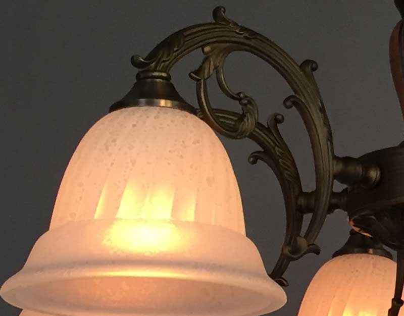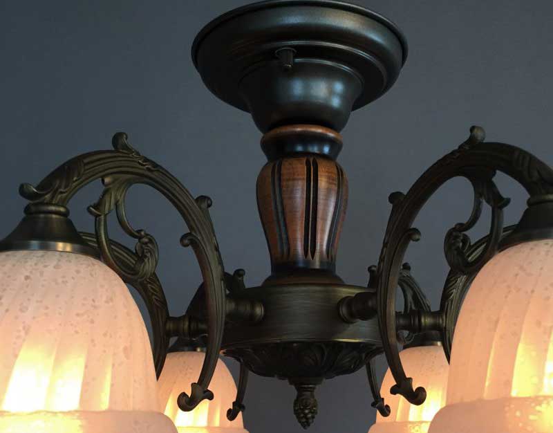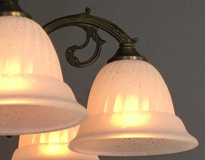 オリジナルの本体にイタリア製のガラスを合わせた6灯オリジナルシーリング照明です。リビングやマンション居室などに最適な器具高の少ないシャンデリアです。