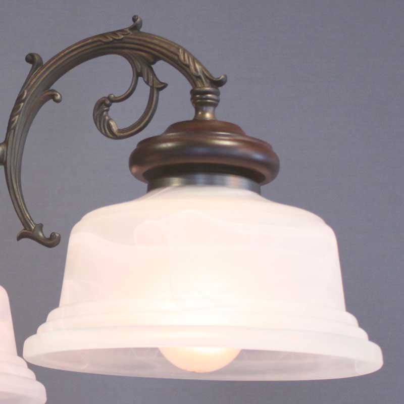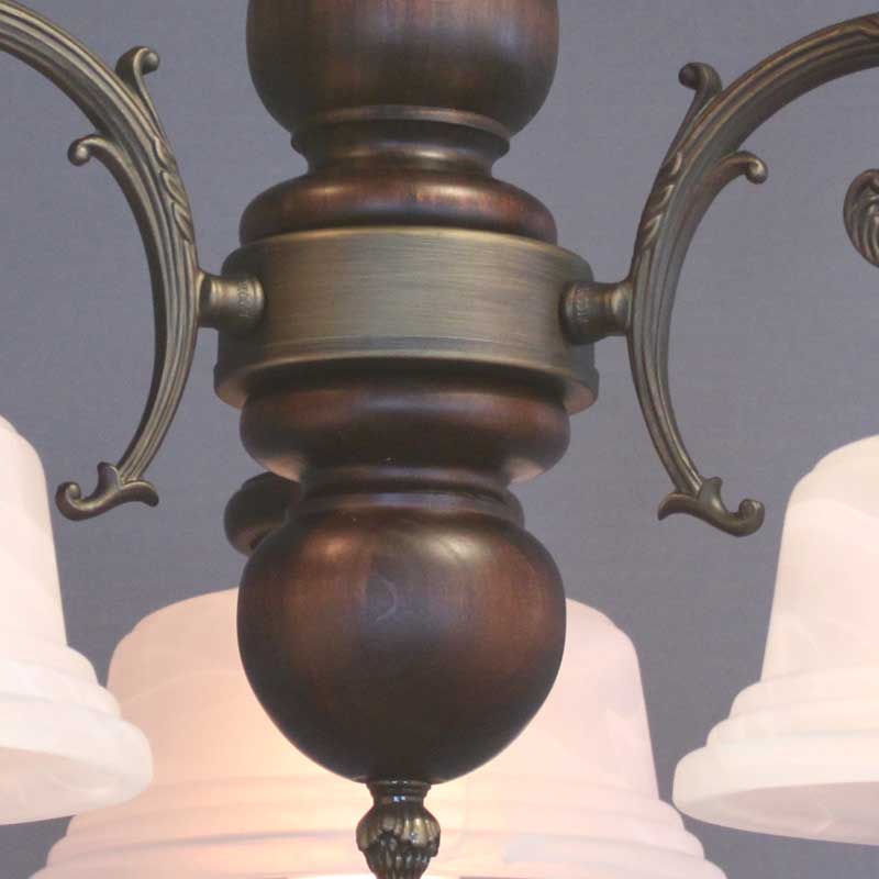 クラシックなレトロ感あるオリジナルシャンデリアです。アームは金属鋳物を使用し本体と各アームには木飾を使用しております。